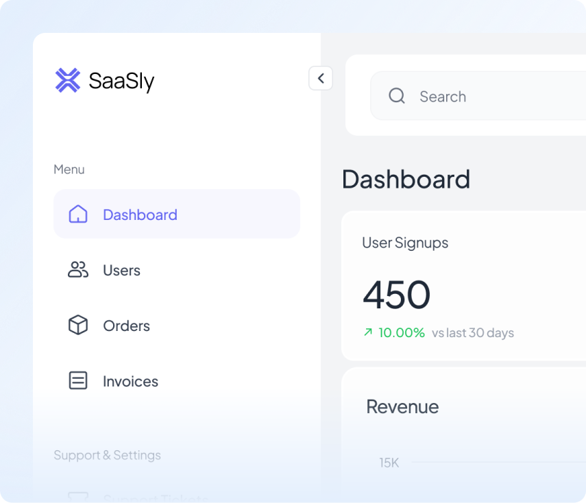 This platform is designed to support dashboard-based SaaS products, including analytics, CRM, finance tools, internal systems, and other data-driven applications.